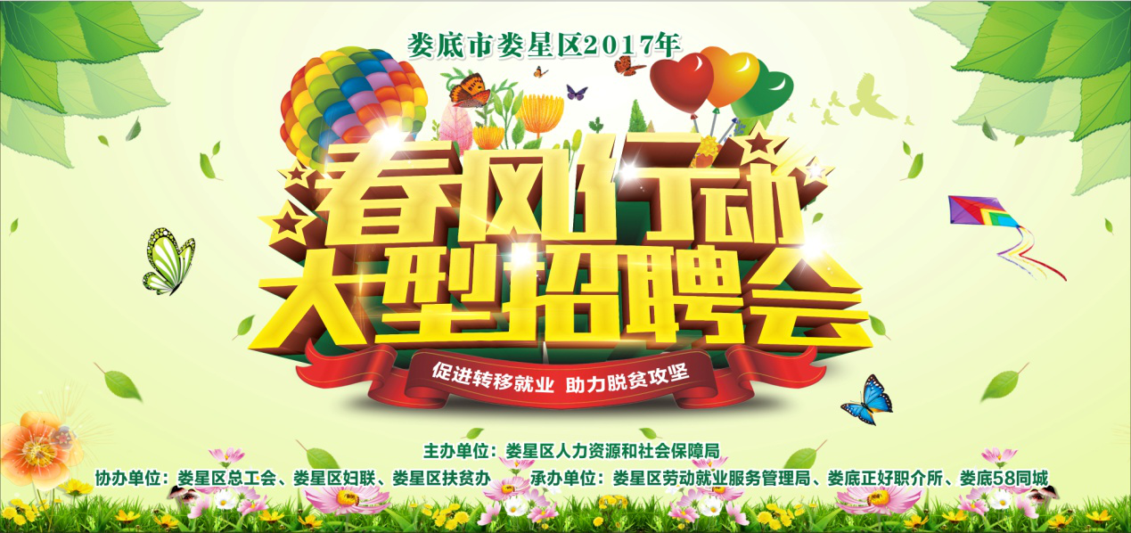 為全面落實(shí)中央、省、市關(guān)于精準(zhǔn)脫貧工作的總體要求,幫助建檔立卡貧困勞動(dòng)力、返鄉(xiāng)農(nóng)民工、高校未就業(yè)大學(xué)生、城鄉(xiāng)居民實(shí)現(xiàn)穩(wěn)定就業(yè)。婁底市婁星區(qū)2017年春風(fēng)行動(dòng)大型招聘會(huì)暨促進(jìn)轉(zhuǎn)移就業(yè),助力脫貧攻堅(jiān)招聘會(huì)將于3月16日在婁星廣場(chǎng)舉行。